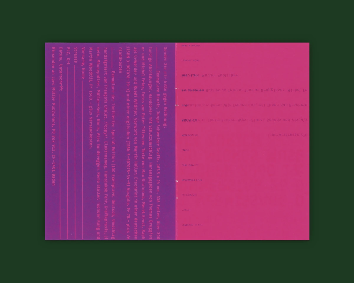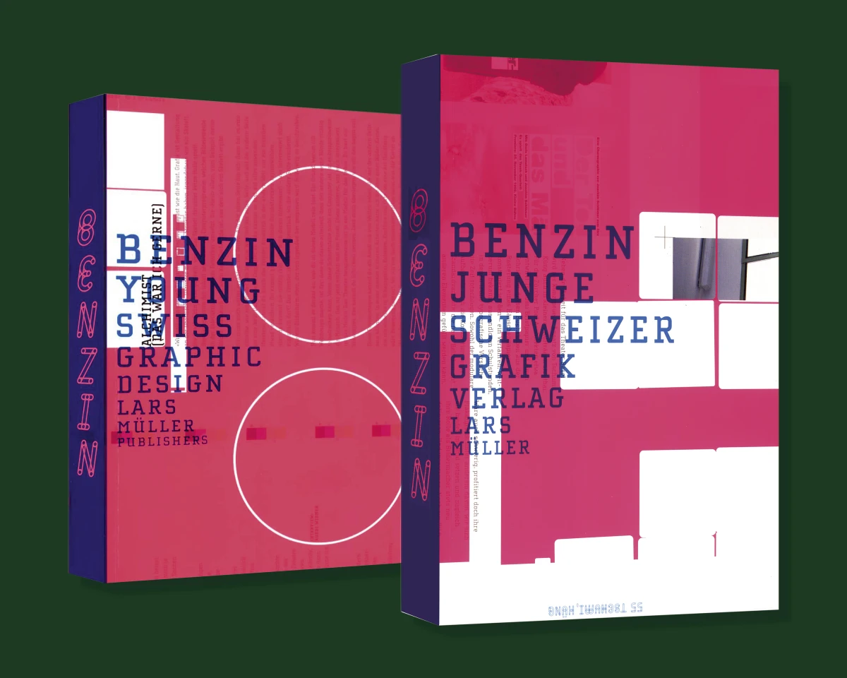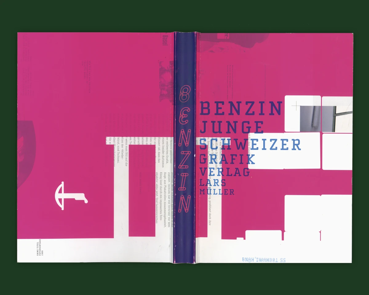 Zusammen mit Michel Fries habe ich das Buch «Benzin – Junge Schweizer Grafik» erdacht, kuratiert, gestaltet und herausgegeben. Es ist eine Bestandesaufnahme der Grafik in der Schweiz im Jahr 2000. Und war zum Zeitpunkt seines Erscheinens eine erfrischende Provokation rund um den Begriff Schweizer Grafik. Wir haben über ein Jahr Gestalterinnen und Gestalter in der ganzen Schweiz besucht und für das Buch ausgewählt. Darunter waren ein paar Entdeckungen von Leuten, die in den Jahren danach grosse Designer wurden. Das Buch erschien in Deutsch und Englisch, die Zweitauflage als Softcover. Die abgebildeten Grafiken im Buch sind von den porträtierten Gestalterinnen und Gestaltern. 165 x 240 mm, 336 Seiten.