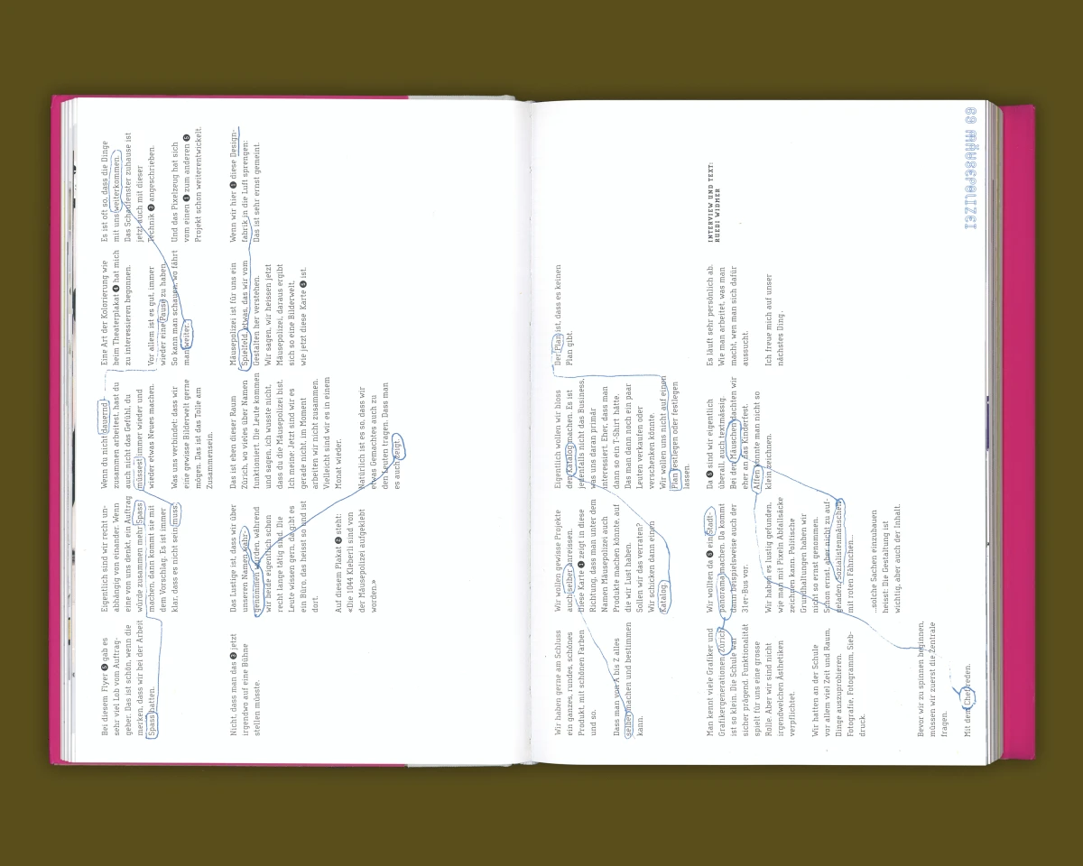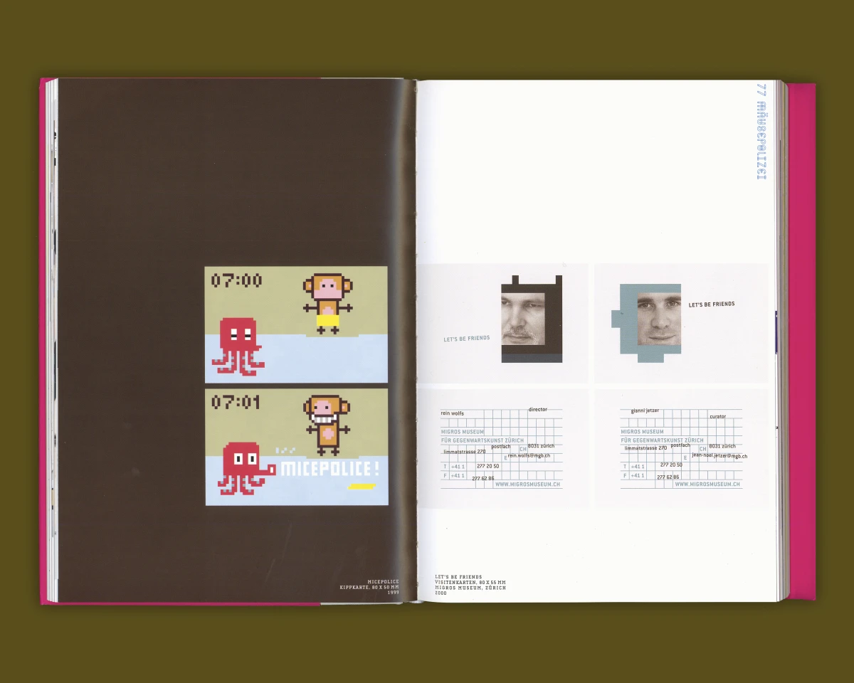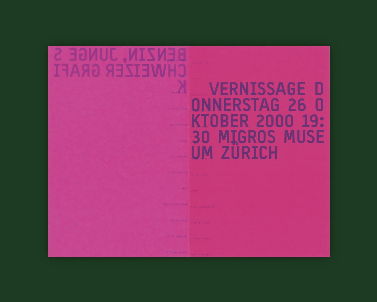 Zusammen mit Michel Fries habe ich das Buch «Benzin – Junge Schweizer Grafik» erdacht, kuratiert, gestaltet und herausgegeben. Es ist eine Bestandesaufnahme der Grafik in der Schweiz im Jahr 2000. Und war zum Zeitpunkt seines Erscheinens eine erfrischende Provokation rund um den Begriff Schweizer Grafik. Wir haben über ein Jahr Gestalterinnen und Gestalter in der ganzen Schweiz besucht und für das Buch ausgewählt. Darunter waren ein paar Entdeckungen von Leuten, die in den Jahren danach grosse Designer wurden. Das Buch erschien in Deutsch und Englisch, die Zweitauflage als Softcover. Die abgebildeten Grafiken im Buch sind von den porträtierten Gestalterinnen und Gestaltern. 165 x 240 mm, 336 Seiten.