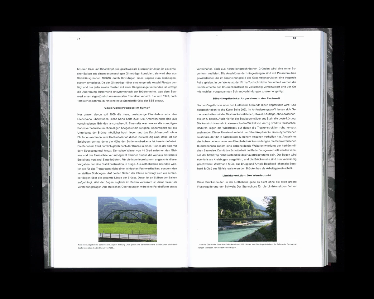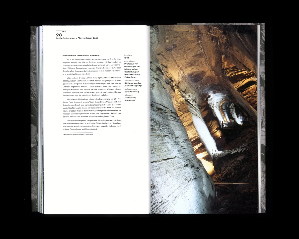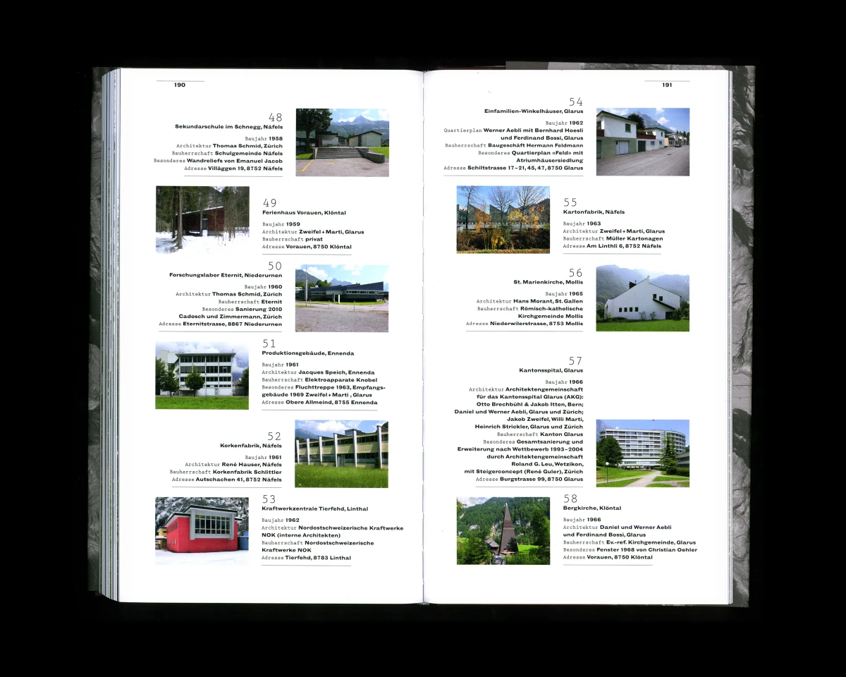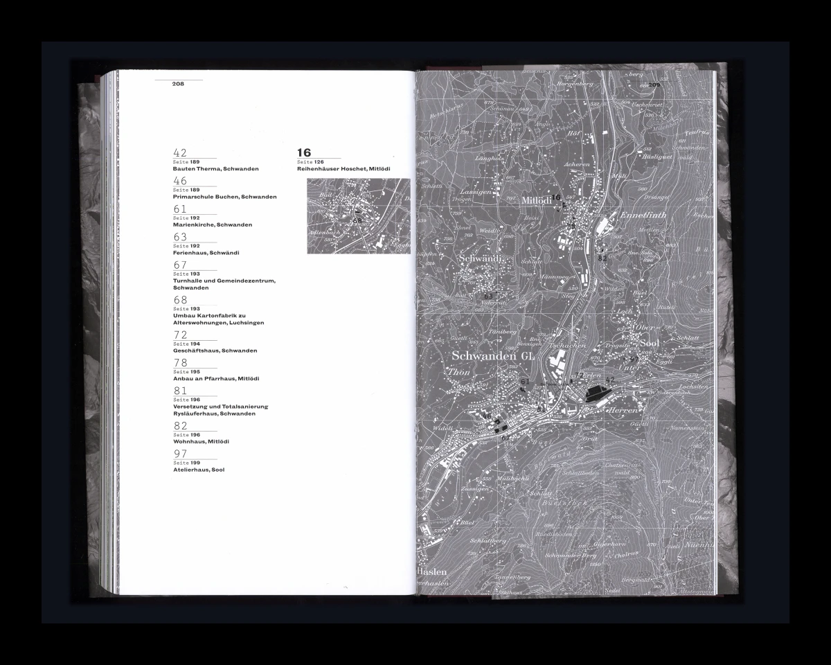 «Verborgen, vertraut. – Architektur im Kanton Glarus von 1900 bis heute». Dieses Buch konnte ich in enger Zusammenarbeit mit Judith Gessler, Hansruedi Marti und Rahel Marti entwickeln. Dem Buchkonzept liegt eine ausgeklügelte Systematik zugrunde. Wichtig waren mir die bearbeiteten Kartenausschnitte und ihre dem Buch entsprechende Darstellung, die Bezug nehmen auf das schroffe und felsige Glarnerland. 160 x 270 mm, 224 Seiten.